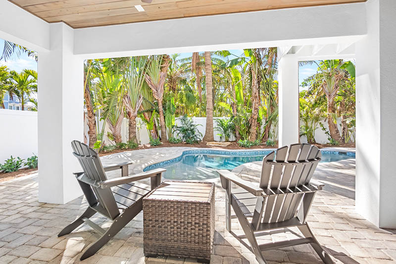 Dive into your heated saltwater pool and spa oasis, surrounded by tropical landscaping and outdoor dining spaces. Perfect for morning laps, afternoon pool games, or evening soaks under the stars with a glass of wine.